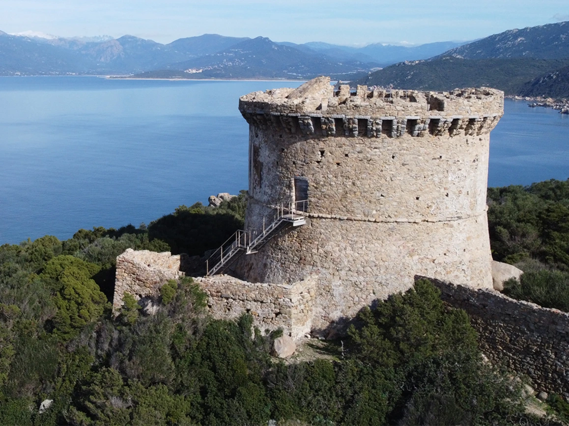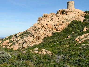 La Tour Génoise de la Calanca surplombe la plage de Campitello.