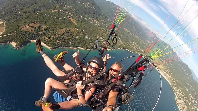 Baptème en paramoteur au dessus du merveilleux Golfe du Valinco à Olmeto en Corse du Sud.